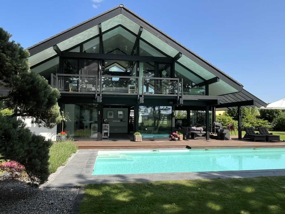 Stellen sie sich vor, Sie sitzen am Esstisch und Ihr Blick schweift über das Blau des Pools, das Grün des Gartens und darüber hinaus in die Weite der Natur- einmalig schön! Entspannung pur! Dieses Haus bezieht die Natur in das Wohnen ein. Sie ist die Kulisse für jeden Tag. Eine Kulisse, die sich im Lauf der Jahreszeiten wandelt, aber immer ihre Schönheit bewahrt.