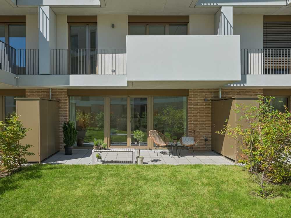 Die rund 104 m² Wohnfläche sind klar und offen strukturiert. Im Zentrum der Wohnung liegt der offen gestaltete Wohn- und Essbereich mit Zugang zur Terrasse und dem angrenzenden Garten, perfekt für ein Frühstück in der Morgensonne oder das erste Planschbecken für die Kinder. Die Möglichkeiten zur individuellen Gestaltung sind vielfältig. Zwischenräume im Außenbereich sorgen für eine angenehme Abgrenzung zur Nachbarwohnung und bieten zusätzlichen Stauraum, etwa für Gartenmöbel.