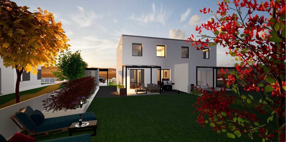 Neubau: Doppelhaushälfte (Energieeffizienzhaus 55) | 238 m² Garten | Terrasse | Stellplatz