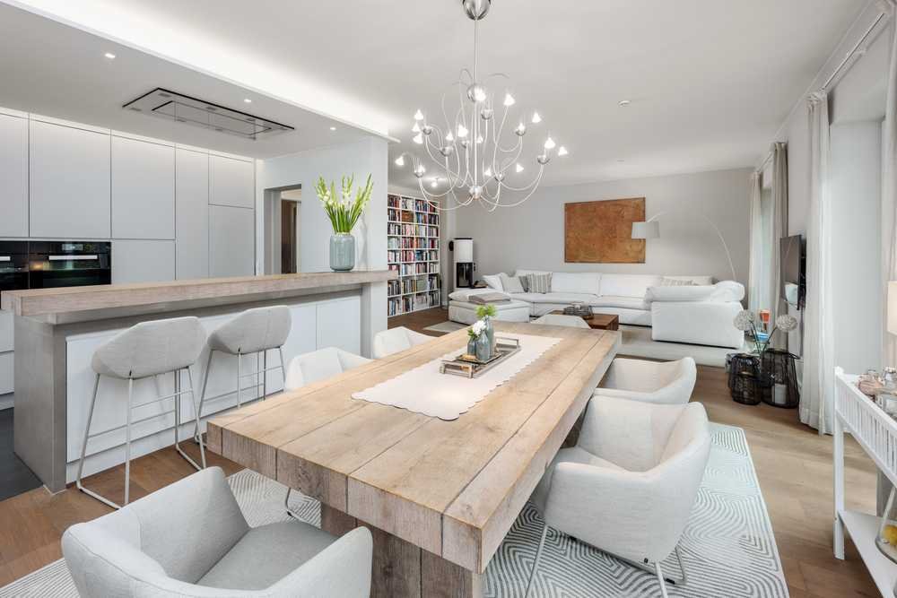 Ein paar weitere Fakten: Die moderne Wohnung verfügt über dreifach verglaste bodentiefe Holzfenster, die Beheizung erfolgt über eine Erdwärmepumpe mit Fußbodenheizung, das Gebäude hat die Energieklasse A. Die Deckenhöhe von rd. 2,80 m schafft zudem eine außergewöhnliche Raumwirkung. Auch der Sicherheitsaspekt ist mit dem Einbau einer Alarmanlage und einer Videogegensprechanlage berücksichtigt worden.
