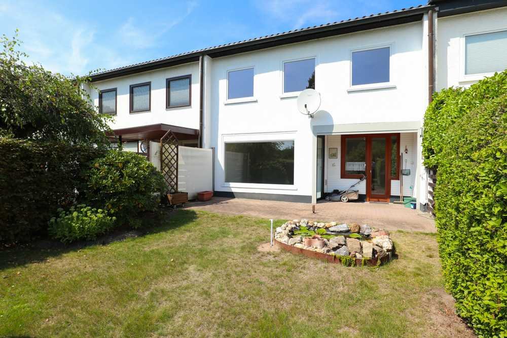 Das Haus befindet sich auf einem ca. 330 m² großen Grundstück inklusive 17 m² Garagenfläche im nahegelegenen Garagenhof. Ein schön angelegter Garten mit Terrasse, gepflegter Grünfläche und praktischem Gartenhaus bietet Raum zur Erholung.