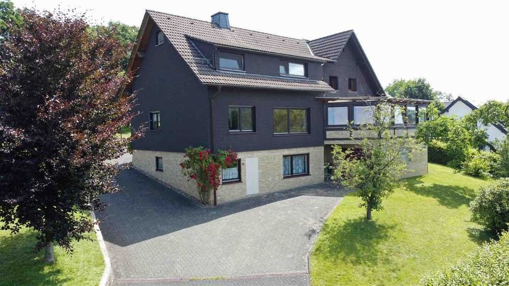 Es handelt sich hier um zwei aneinander gebaute Häuser auf einem 1.382 m² großen Grundstück mit einer gepflasterten Auffahrt zur Hausrückseite mit Garten, einem Garagenhaus und einem Doppelcarport. Die Häuser wurden von zwei Familien/Generationen 1951 und 1979 gebaut und bieten für diese Form des Zusammenlebens die besten Möglichkeiten. Für 445.000 € ist die komplette, vom Eigentümer vorbildlich gepflegte Immobilie zu erwerben. Das kleinere, ältere Wohnhaus (112 m² Wohnfläche) wurde 2010 aufwendig modernisiert und ist derzeit noch vom Eigentümer bewohnt. Das größere Haus (123 m² familiengerecht aufgeteilte Wohnfläche) ist unbewohnt und bereits geräumt. Besonders erwähnenswert ist bei beiden Häusern der unverbaubare Fernblick, bei dem Sie ganzjährig die Sonne am Horizont untergehen sehen können.