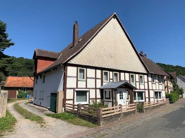 Dieses ansprechende Fachwerkhaus wurde im Jahr 1862 erbaut und 1972 erfolgte ein Anbau. Dieses Anwesen wurde zum Teil modernisiert und bietet einer Familie großzügige Platzverhältnisse. Mit dem Kachelofen und der Gas- Zentralheizung (Flüssig-Gas) wird das Haus beheizt. Das moderne Bad im Erdgeschoss wurde erst kürzlich ansprechend erneuert. Die zwei angebauten Scheunen ermöglichen diverse Nutzungsmöglichkeiten (Werkstatt, Abstellfläche, Wohnmobil Unter-Stellplatz, Tierhaltung, etc.)