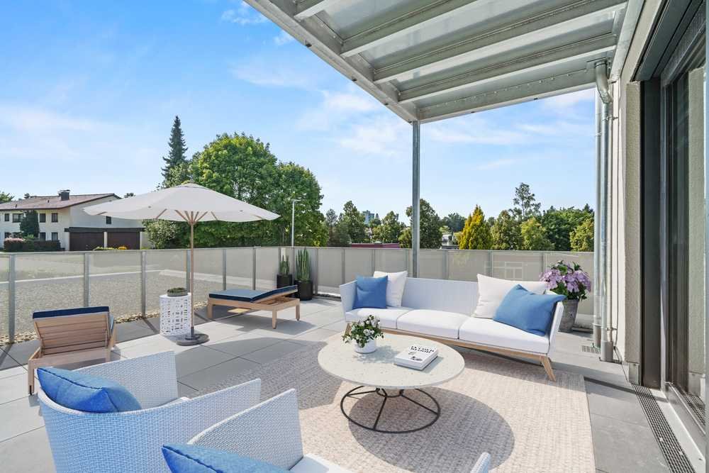 Die 4,5-Zimmer-Wohnung überzeugt mit einem großzügigen Wohn-, Ess- und Kochbereich, zwei Schlafzimmern, einem flexiblen Büro- oder Gästezimmer, einem modernen Bad sowie einem Gäste-WC. Große Fensterflächen lassen viel Tageslicht herein und schaffen eine helle, freundliche Wohnatmosphäre. Die Terrasse erweitert den Wohnbereich ins Grüne und lädt zum Entspannen und Genießen ein.