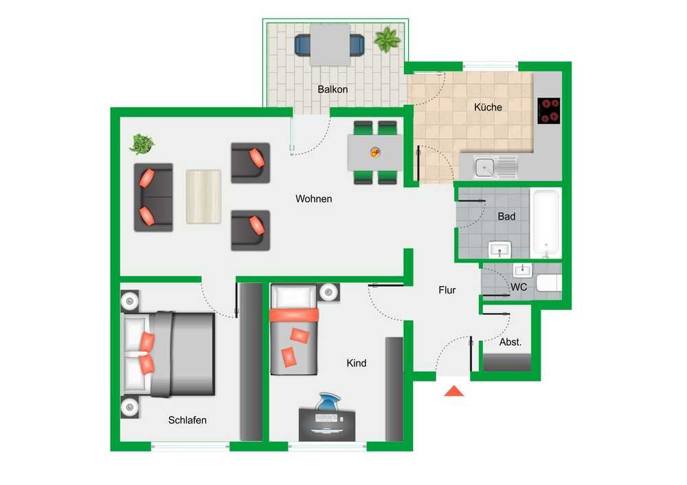 Der Grundriss der Immobilie eignet sich ebenfalls für eine WG-Vermietung (FH Geislingen).