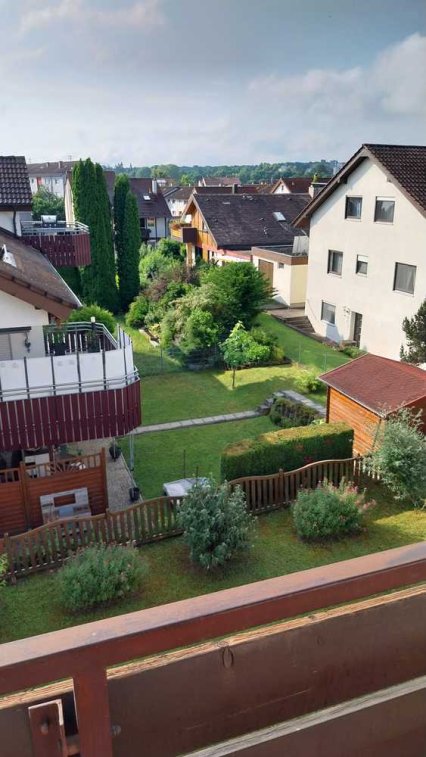 großem, überdachten Balkon mit herrlichem Blick ins Grüne und Blaue
