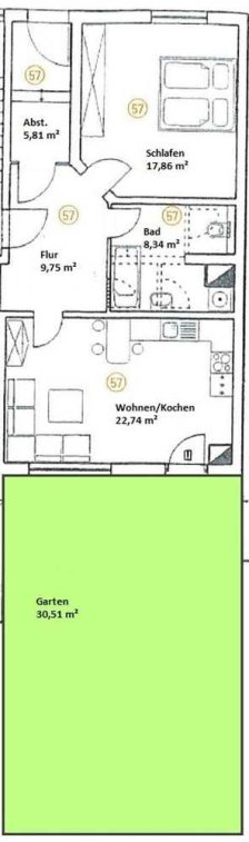 Die 2-Zimmerwohnung liegt im EG und hat einen eigenen Eingang von der Schenkendorfstraße. Dieser praktische, private Zugang kann für Fahrrad, Kinderwagen oder Schuhe genutzt werden. Ein weiteres Highlight ist der ca. 30qm große, private Garten, der als Sondernutzungsrecht der Wohnung zugeordnet ist. Hier kann man sich mitten in der Stadt und nur wenige Minuten von der Zentrum entfernt, sein eigenes grünes Biotop schaffen. Die Einheit verfügt über ein Bad mit Wanne und eine großzügige Wohnküche. Die breite Fensterfront bietet einen schönen Blick in den eigenen Garten. Zur Wohnung gehört auch ein Kellerabteil, dass zusätzlichen Stauraum bietet.