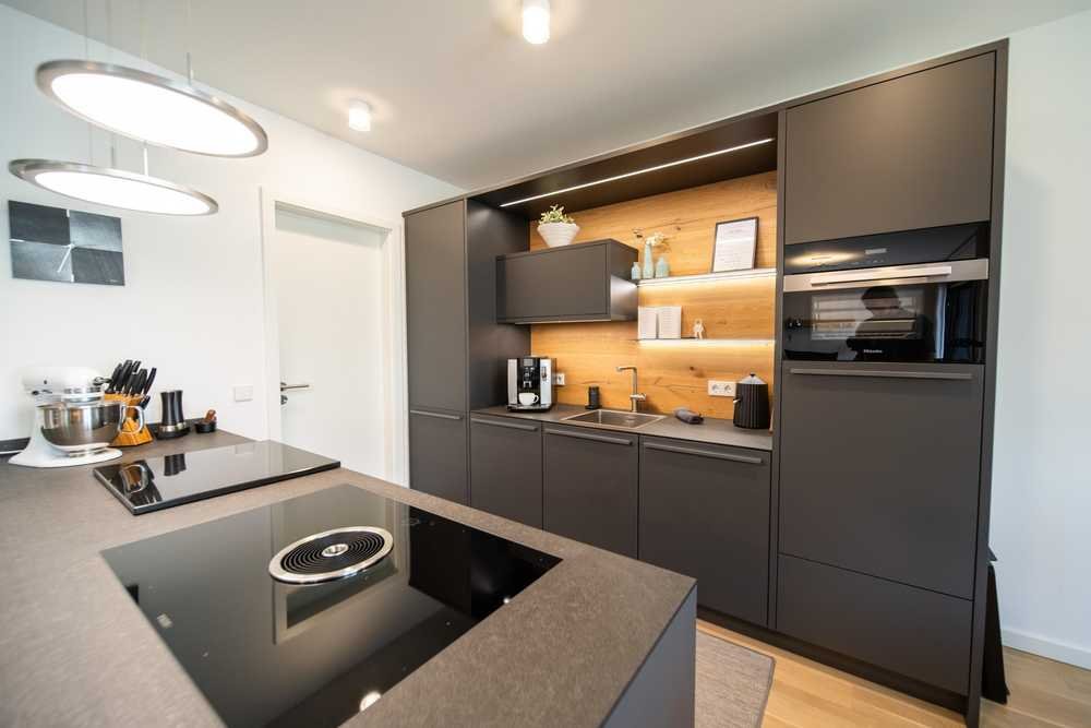 Die offene Küche ist nicht nur otpisch ein Statement, sondern auch technisch auf dem neuesten Stand – mit hochwertigen Einbaugeräten und cleverem Stauraum. Direkt anschließend finden Sie den praktischen Abstellraum für Vorräte und Haushaltsgeräte.