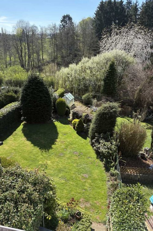 Das hier angebotene Haupthaus (frei) bietet 120,40 qm Wohnfläche zuzüglich 64,59 qm Nutzflächen im Keller, Dachspeicher und der besonders großen Einzelgarage. Das Grundstück ist insgesamt 560 qm groß. Nach einer Aufteilung in zwei Eigentumswohnungen besteht ein Sondernutzungsrecht am Gartenanteil, der diesem Haus zugeordnet wird. Die Gesamtfläche der dieser künftigen Eigentumswohnung zugeordneten Grundstücksfläche beträgt ca. 390 qm. Die beigefügte Flurkarte zeigt die künftige Fläche des Sondernutzungsrechts farblich in Magenta unterlegt.