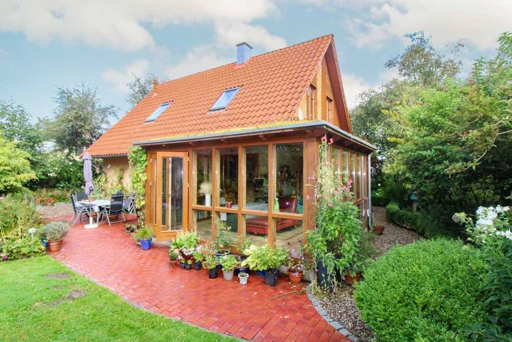 Das Herzstück des Hauses ist der großzügige Wintergarten. Hier sitzen Sie im Licht durchfluteten Raum, genießen den Blick in Ihren großen Garten und fühlen sich der Natur zu jeder Jahreszeit verbunden – ob beim Frühstück in der Morgensonne oder mit einem Glas Wein an einem Herbstabend.