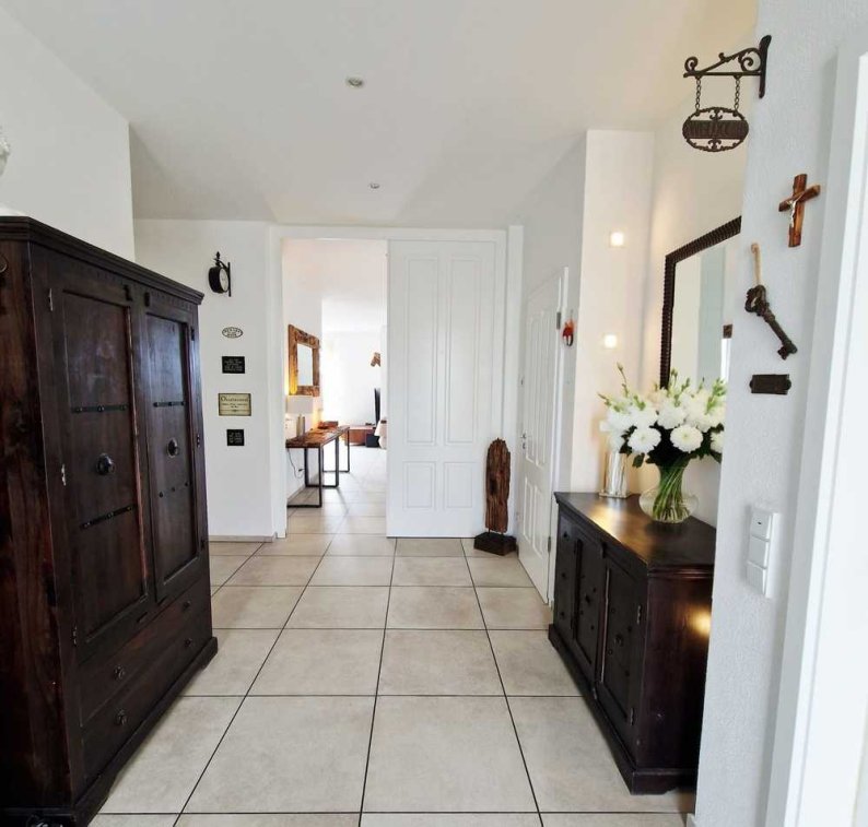 Mediterranes Wohngefühl auf höchstem Niveau: Dieses stilvolle Einfamilienhaus begeistert mit italienischem Landhausstil, Natursteinböden, Deckenhöhen von 3m bis 4,5 m und einem einzigartigen, Weinkeller im Essbereich. Diese hochwertig ausgestattete Immobilie bietet 3 Schlafzimmer darunter ein Gäste-/Arbeitszimmer, hochwertige Bäder mit Naturmarmor, eine offene Küche und einen liebevoll gestalteten Garten mit Weitblick.