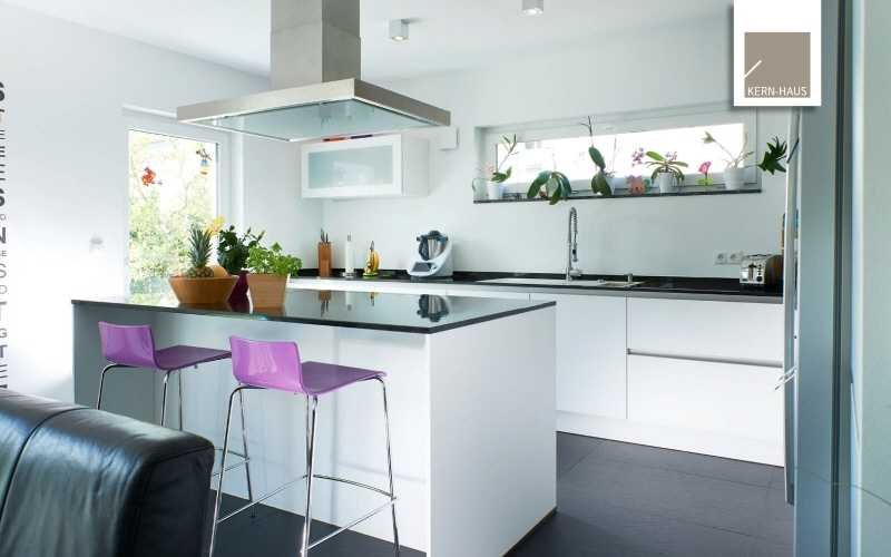 Ein freies Wohngefühl bietet auch der durch die großen Fensterflächen mit Tageslicht erhellte Wohn-/ Essbereich. Der nahezu stufenlose Übergang auf die überdachte Terrasse lässt die Natur bestmöglich erleben.
