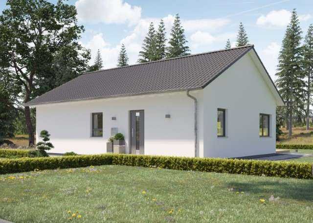 Sehr praktisch geschnitten und nah am Eingangsbereich befindet sich die offen gestaltete Küche mit angrenzendem Wohn-/Essbereich. Ein Schlafzimmer mit direkt nebenanliegenden Badezimmer und ein weiteres Zimmer, ob als Büro, Hobbyraum, Gäste- oder Kinderzimmer stehen in dieser Hausvariante zur Verfügung. Im Hauswirtschaftsraum ist neben der Haustechnik noch ausreichend Platz für Waschmaschine und Trockner.