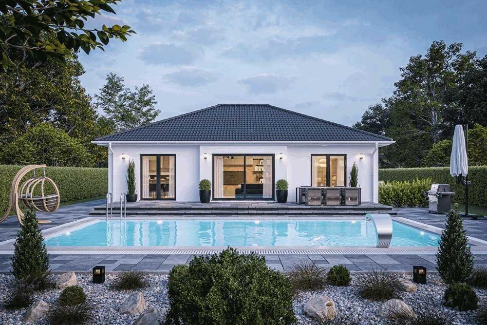Der Bungalow CLOU 111 ist mehr als ein Haus - er ist ein Lebensraum für Menschen, die Klarheit, Komfort und Flexibilität schätzen. Auf rund 111 m² Wohnfläche entfaltet sich ein durchdachtes Raumkonzept, das Offenheit und Rückzug harmonisch vereint.