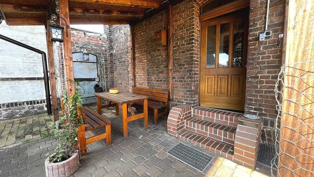 Das Vorderhaus (ca. 120 m²) stammt aus dem Jahr 1880 und begeistert mit historischem Charme: Originale Türen, sichtbare Holzbalken und großzügige Raumhöhen erzählen Geschichten vergangener Zeiten. Zwar ist hier eine Renovierung nötig, doch gerade das macht den Reiz aus – gestalten Sie Ihr Zuhause ganz nach Ihrem Stil.