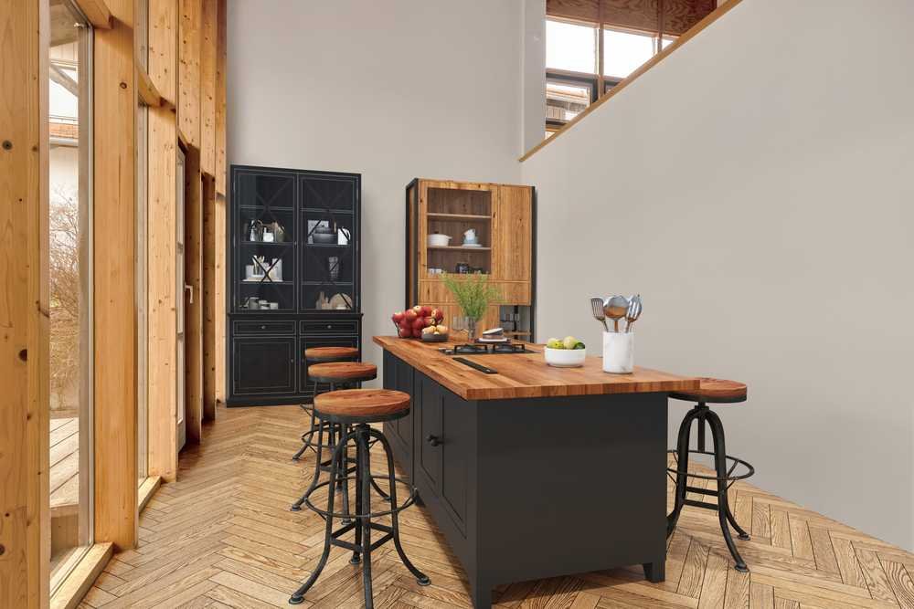 Über die markante Stahltreppe geht es hinauf ins Obergeschoss, wo unter den hohen Dachbalken Freiraum für Kinderzimmer, Homeoffice oder eine stilvolle Lounge wartet. Alles ist möglich – für Familien, Kreative oder Architekturliebhaber, die ihren Traum vom Wohnen leben möchten.
