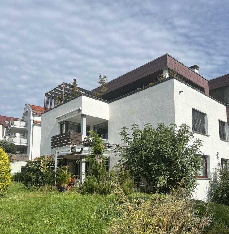 Zur Immobilie gehört auch ein Balkon mit Markise, auf dem es sich mit einem Fernblick bis zur schwäbischen Alb wunderbar vom Alltag erholen lässt.