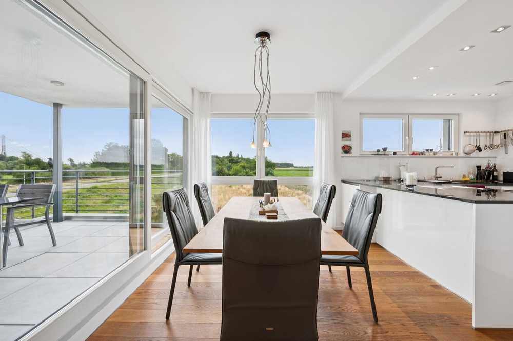 Stilvolle Ausstattungsdetails sowie modernste Technik werden hier hochwertig kombiniert. Dank der Dachterrasse im "Penthousestil" auf der zweiten Ebene, erleben Sie hier zusätzliche Lebensqualität wie Sie Ihnen nur selten zu Teil wird. Dieser Aspekt kommt durch den direkt benachbarten Rhein und die weiten Sichtachsen über die umliegenden Felder nochmal besonders zur Geltung.
