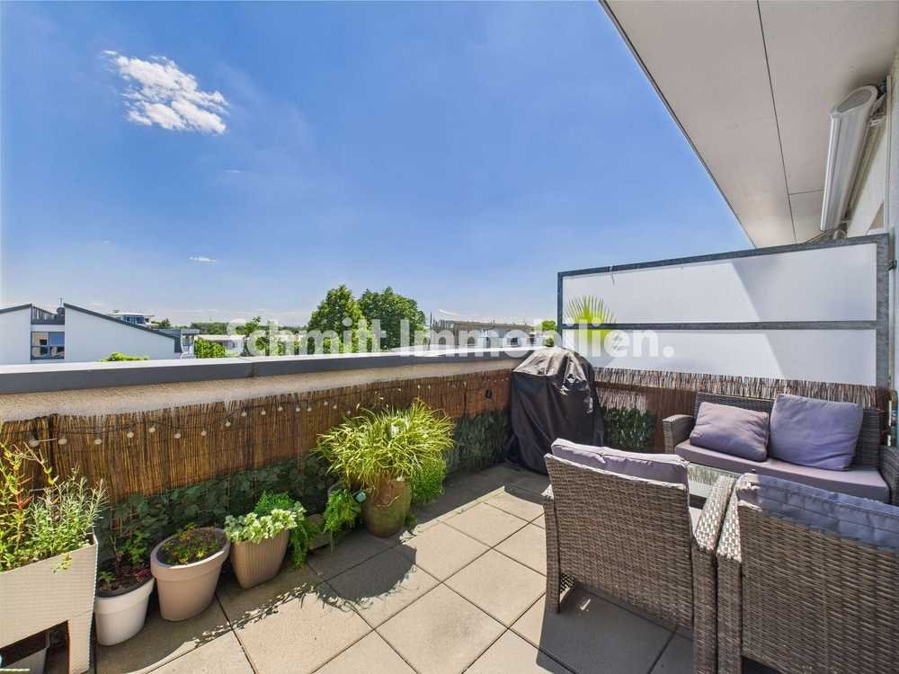 Die sonnige Dachterrasse in Südausrichtung mit rund 11 m² wird an warmen Tagen zum Lieblingsplatz – perfekt für Frühstück im Freien oder entspannte Abendstunden.