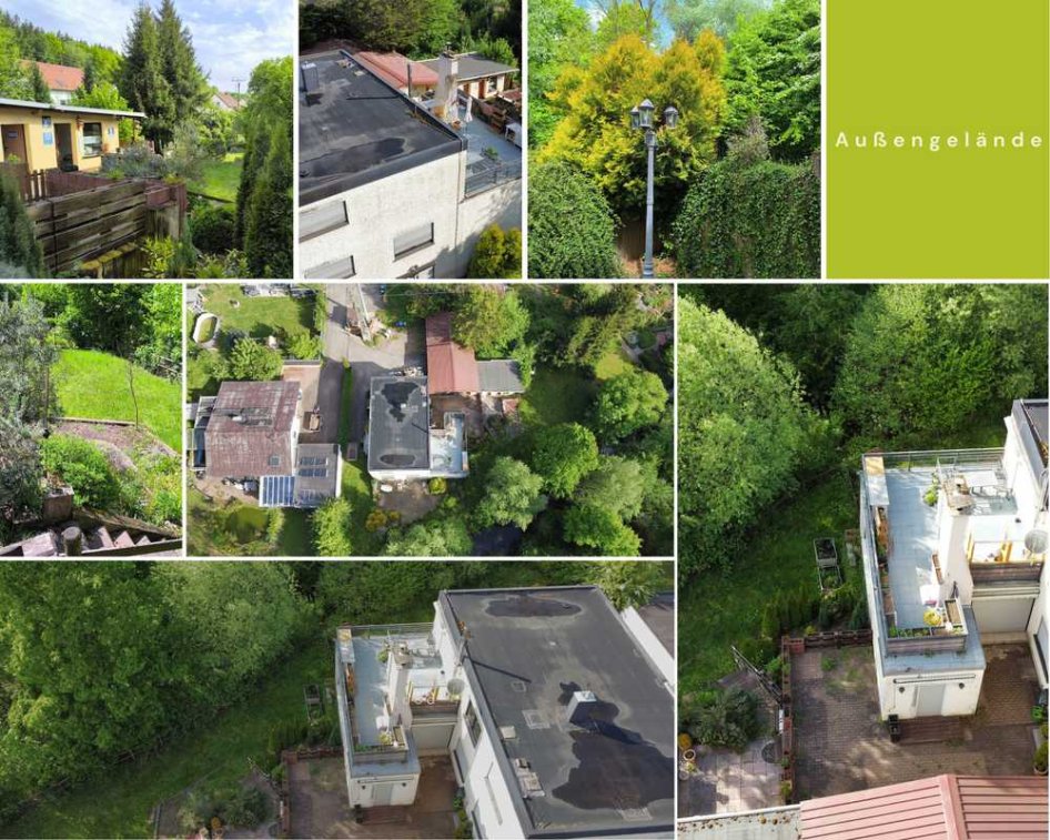 Der großzügige Garten erstreckt sich über mehrere Ebenen und bietet viel Platz zur Erholung, zum Spielen oder Gärtnern. An die gemauerte Doppelgarage schließen sich weitere Räume an, die als Gartenhaus bzw. Werkstatt genutzt werden können. Neben der Garage steht zusätzlich ein Carport für zwei PKW zur Verfügung.
