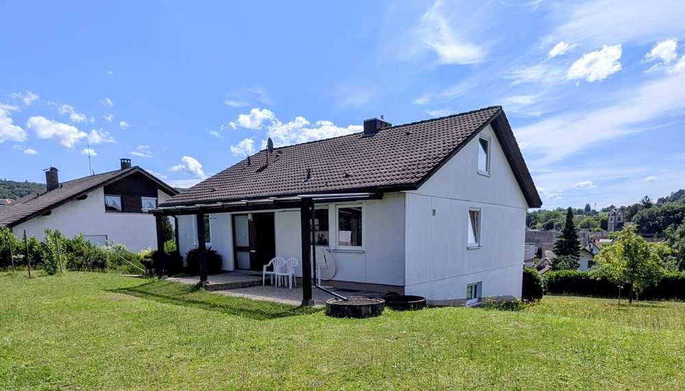 Angeboten wird ein gepflegtes Einfamilienhaus mit Einliegerwohnung, großem Garten und einer großen Doppelgarage in ruhiger Lage und herrlicher Aussicht.
