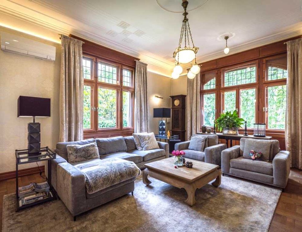 Die Villa inszeniert Großzügigkeit: hohe Decken, elegante Stuckaturen und historisches Tischlerhandwerk, ergänzt durch klare Linien und zurückhaltende, wertige Oberflächen. Die Wohn- und Gesellschaftsräume fließen – vom Entree über die Salons bis auf die sonnigen Terrassen. In den oberen Etagen schaffen private Suiten mit eigenen Bädern und Ankleiden Rückzugsorte auf Niveau eines Boutique-Hotels. Ob Morgenkaffee mit Fernblick oder sommerliche Dinnertafel im Freien – die Außenflächen werden zum zweiten Wohnzimmer.