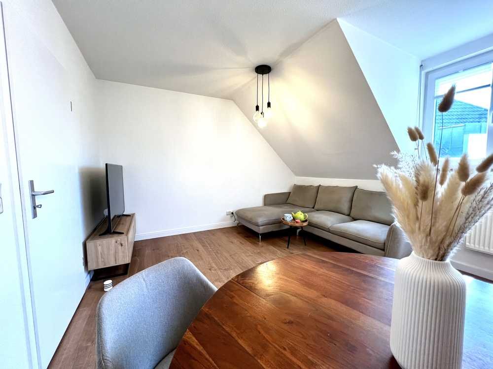 • Wohnbereich: Ein einladender Wohnbereich, der harmonisch in die angrenzende Küche übergeht und so einen offenen Wohncharakter schafft. Eine Einbauküche mit freistehendem Kühlschrank ist bereits integriert.
