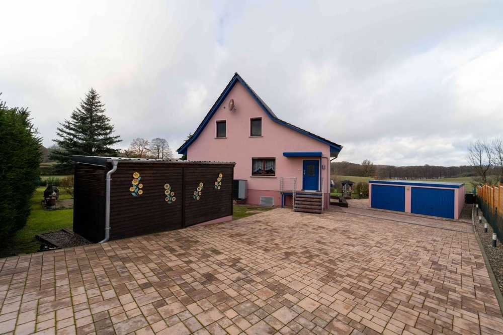 Das Haus besitzt 3 Etagen und insgesamt 8 Zimmer, 3 Bäder und 2 Küchen. Aufgrund des praktischen Grundrisses kann es auch als Zweifamilienhaus genutzt werden, denn Erdgeschoß und Obergeschoß haben separate Eingänge. Auf dem Grundstück befinden sich noch eine Doppelgarage mit einem separaten Anbau und einen Geräteschuppen. Eine 4 m³ große Zisterne kann zur Bewässerung genutzt werden. Der Blick ins Freie und auf den Schlesersee lädt zum entspannen und erholen ein.