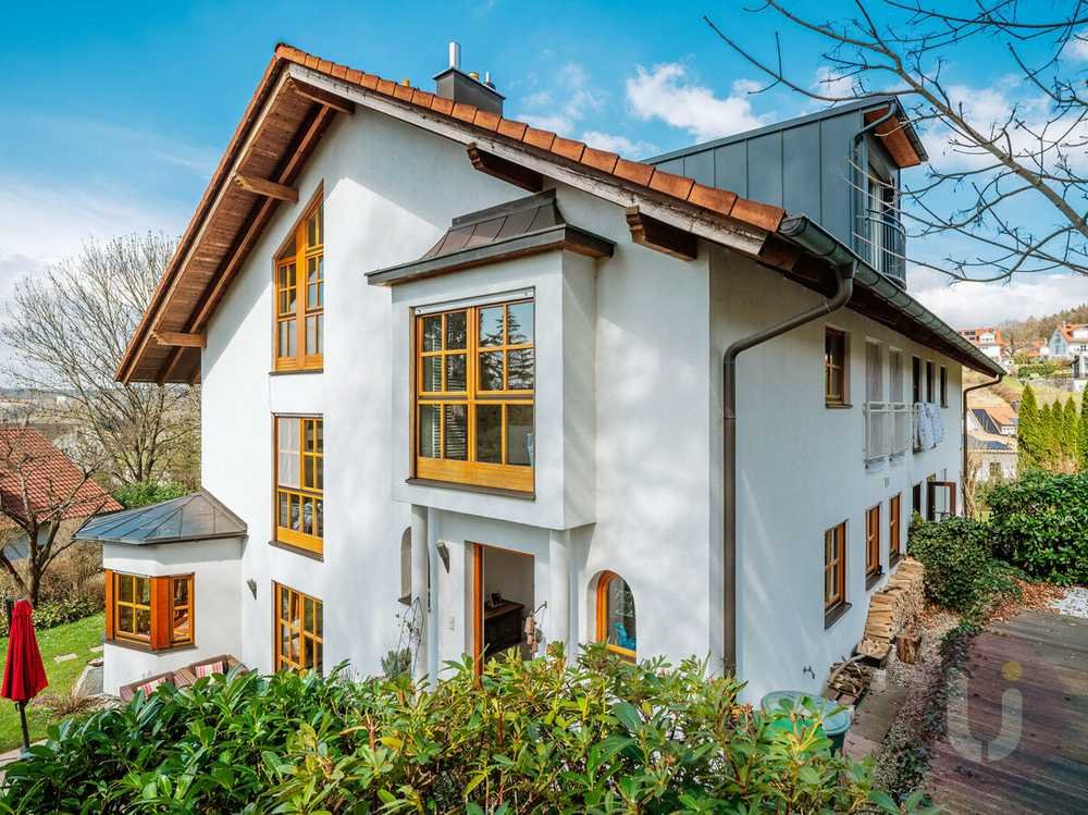 Diese außergewöhnliche Doppelhaushälfte bietet mit 260 m² Wohnfläche auf mehreren Ebenen ideale Ruhe- und Erholungsmöglichkeiten für Familie, Gäste und Homeoffice. Die geschickte Etagenaufteilung ermöglicht es allen Bewohnern (auch mehrere Generationen), sich privat zurückzuziehen und stets ein WC oder Badezimmer in unmittelbarer Nähe zu haben. In sonniger Süd-West-Hanglage auf einem 970 m² großen Grundstück genießen Sie hier nicht nur viel Platz, sondern auch ein angenehmes Wohnambiente mit herrlichem Weitblick. Aufgrund der Hanglage bietet das Grundstück natürlichen Sichtschutz vor den benachbarten Grundstücken.