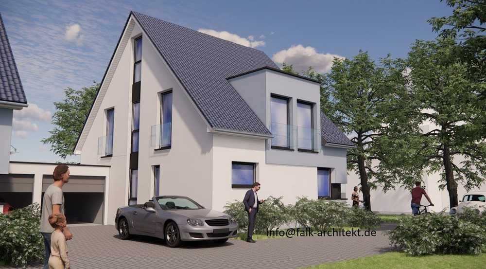 Zum Beispiel diese moderne Doppelhaushälfte mit einer Wohn-Nutzfläche von 148m² mit Keller, beheizt mit Fußbodenheizung zu Wohnzwecken ausgebaut.