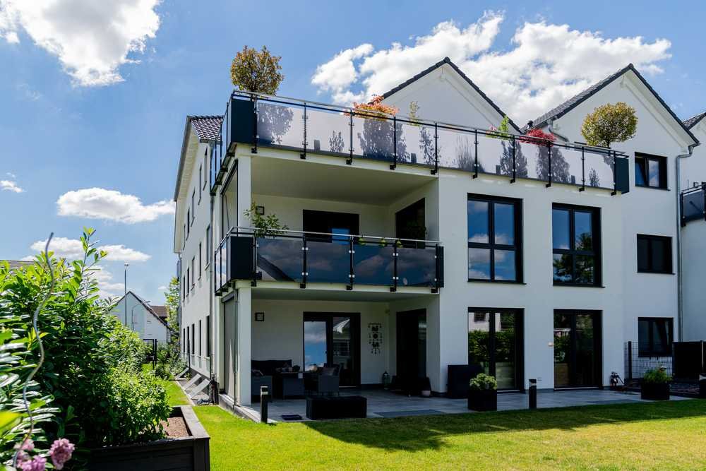 Die insgesamt ca. 128 m² Wohnfläche verteilen sich auf einer barrierefreien Ebene, in Kombination mit der ca. 13 m² großen Loggia in nordwestlicher Ausrichtung. Entweder über das moderne Treppenhaus oder per Aufzug gelangt man in die Wohnung im Obergeschoss dieser im Jahr 2019 errichteten Immobilie. Die angebotene Wohneinheit verfügt über einen modernen Wohn-/Essbereich, verbunden mit einer neuwertigen Einbauküche mit Esstisch. Weiterhin beinhaltet diese Liegenschaft eine Diele mit Garderobe, Tageslichtbad mit großer, begehbarer Dusche und einer hochwertigen Sauna der Marke Klafs sowie 3,5 weitere, flexibel nutzbare Zimmer. Aus dem Wohnbereich gelangt man auf den überdachten Balkon mit seitlicher Markise und unverbautem Blick ins Grüne.