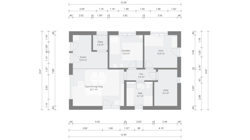 Nettoraumfläche EG 82,00m2
