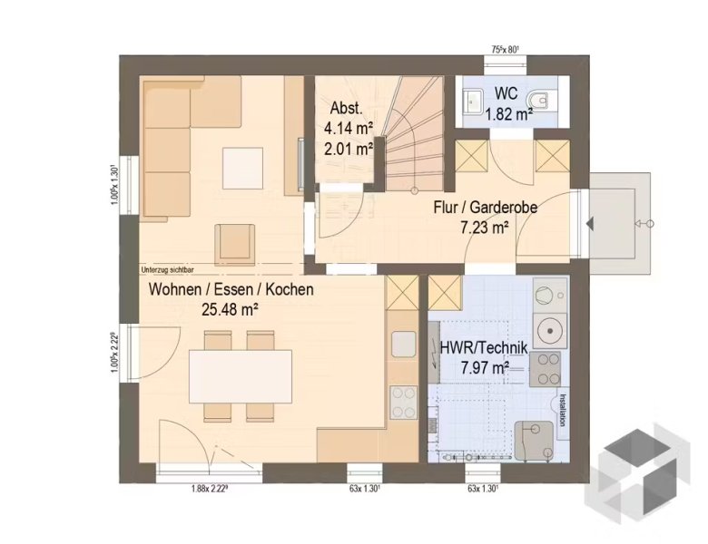 Nettogrundfläche EG: 45,65 m²