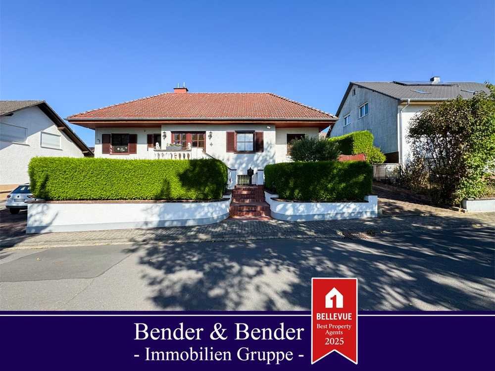 Dieses massive Einfamilienhaus wurde ca. 1990 erbaut und erstreckt sich über eine Etage, wodurch Wohnen auf einer Ebene ermöglicht wird. Die Wohnfläche von ca. 142 m² umfasst ein klimatisiertes Schlafzimmer mit angrenzender Ankleide, ein Büro/Kind, ein Badezimmer sowie Gäste. Der begehbare Kleiderschrank sorgt für Stauraum und Komfort. Die Einbauküche lädt zum Kochen und Verweilen ein. Ergänzend sorgt ein luxuriöser Wellnessbereich mit Sauna und Pool für Entspannung. Im EG befinden sich zudem der Wohnbereich und das Esszimmer mit Zugang zum Garten, sodass Sie nahtlos Innen- und Außenwohnen genießen. Das ca. 592 m² große Grundstück bietet eine tolle Fernsicht. Der gepflegte Garten mit Pool eignet sich hervorragend für gesellige Abende oder ruhige Momente im Freien. Das Haus ist unterkellert und bietet vielseitige Nutzungsmöglichkeiten-neben dem Hobbyraum mit Sauna und Duschbad mit WC stehen zusätzliche Stauraumflächen und Weiteres zur individuellen Nutzung bereit. Das DG bietet zudem Ausbaupotenzial: Raumhöhe und Raumgestaltungsmöglichkeiten ermöglichen eine flexible Erweiterung bei Bedarf, z. B. als zusätzlicher Wohn- oder Arbeitsbereich, Gästezimmer oder Mansardenzugang. Der Hofbereich mit großer Garage sorgt für ausreichend Stellfläche für Ihre PKWs.