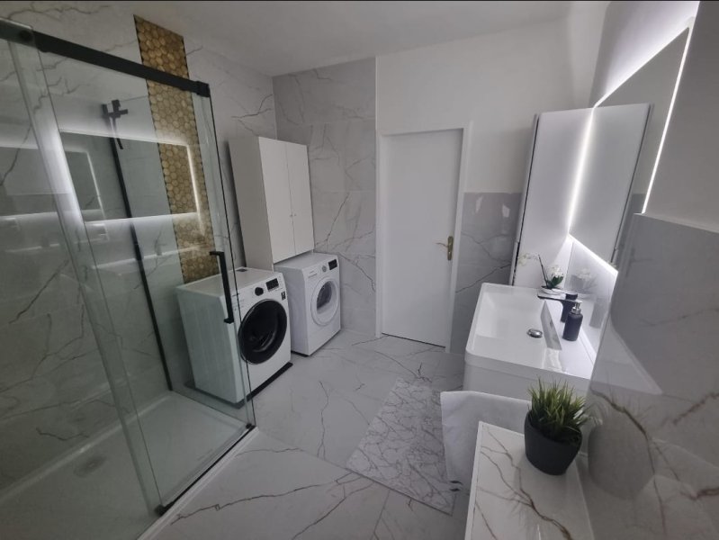 Verteilt auf 71m² und 3 Zimmern im 1.OG eines Wohnkomplexes bietet diese Whg. eine komfortable Raumaufteilung & ein lichtdurchflutetes offenes Ambiente. Durch die besonderen Bodenfliesen bekommt diese einen eindrucksvollen Eigencharme. Im Jahr 2023 wurde die Wohnung sehr aufwändig renoviert. Vom Flurbereich gehen zur linken Seite die moderne Küche, spezial angefertigt mit allen namhaften Küchengeräten sowie das extravagante Badezimmer mit hochmodernen Fliessen & vergoldeten Mosaiksteinen. Das Badezimmer wurde ebenfalls aufwendig saniert & mit qualitativ hochwertigen Sanitäteranlagen & Badmöbel ausgestattet.