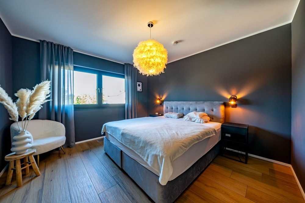 Die Architektur mit einem eleganten Walmdach strahlt zeitlose Modernität aus. Die Grundrisse jeder Doppelhaushälfte sind so konzipiert, dass großzügige und komfortable Räume entstehen. Der offene Wohn-/Ess-/Kochbereich bietet mit seinen 40 m² viel Platz und Helligkeit, dank zwei doppelflügeligen Terrassentüren. Im Erdgeschoss befindet sich ein zusätzliches Zimmer, das flexibel als Homeoffice, Gästezimmer oder Schlafzimmer genutzt werden kann. Das Badezimmer im Erdgeschoss ist mit einer Dusche ausgestattet, was in Kombination mit dem Zusatzzimmer ein ebenerdiges Wohnen ermöglicht. Im Obergeschoss finden Sie einen Elternbereich mit Ankleidezimmer, zwei Kinderzimmern und ein geräumiges Bad.