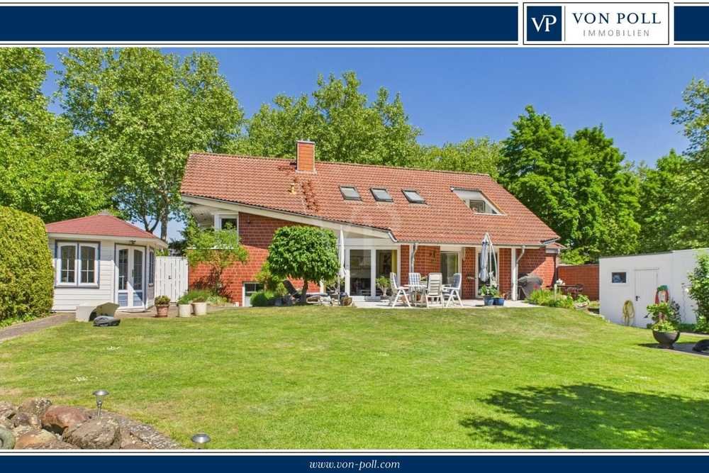 In dem wunderschön angelegten, rundum eingefriedeten Garten mit Teich und Pavillon lässt es sich herrlich entspannen. Ein solide gebauter Unterstand bietet die Möglichkeit zum Aufstellen eines Whirlpools.