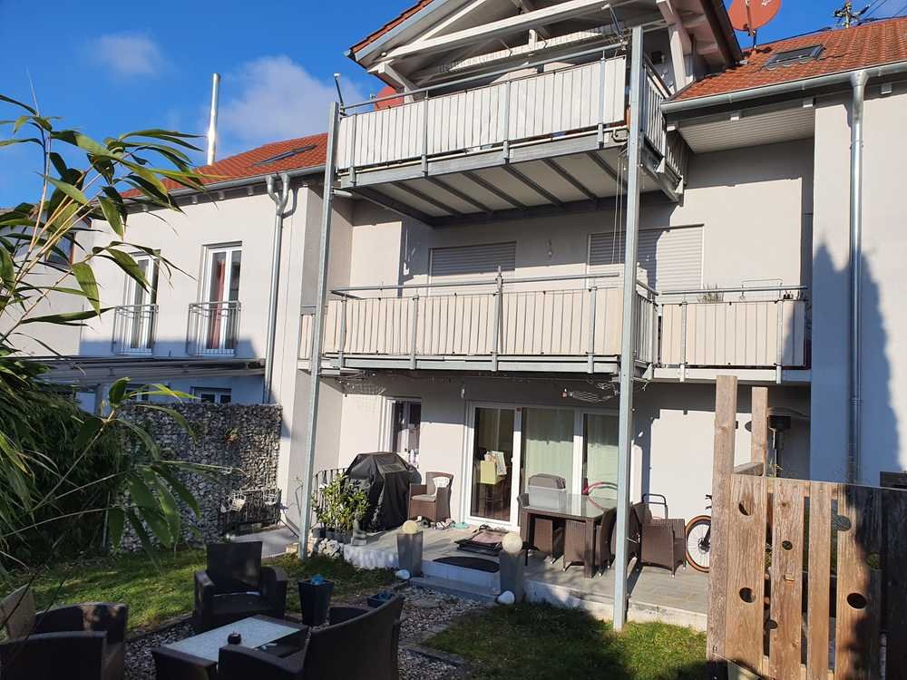 Provisionsfrei: 3 ETW´s in excl. 3 Familien KfW-Effizienzhaus, Süd-Lage, mit 2 schönen großzügigen atriumartigen Mietergärten, Terrasse u. Loggien mit Alpenblick in guter Nachbarschaft. (Umbau u. Total- Sanierung auf Neubaustandard als Energieeffizienzhaus KFW 70 mit 4 Stellpl, davon 3 Stpl getrennt anfahrbar (Carports optional) 1OG frei ab 01.02.2026 / DG u. EG solide vermietet