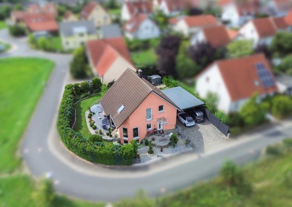 In ruhiger Wohnlage von Uehlfeld erwartet Sie dieses liebevoll gepflegte Einfamilienhaus mit besonderem Charme und einem Garten, der an einen kleinen Schlosspark erinnert. Das im Jahr 2003 massiv erbaute Haus überzeugt mit hochwertiger Bauweise, einer klaren, modernen Architektur und einem ausgezeichneten Pflegezustand.