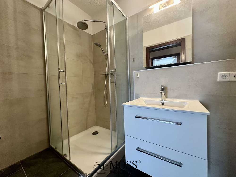 Das Badezimmer mit moderner Dusche wurde 2023 vollständig saniert und präsentiert sich in einem modernen Design mit hochwertigen Materialien.