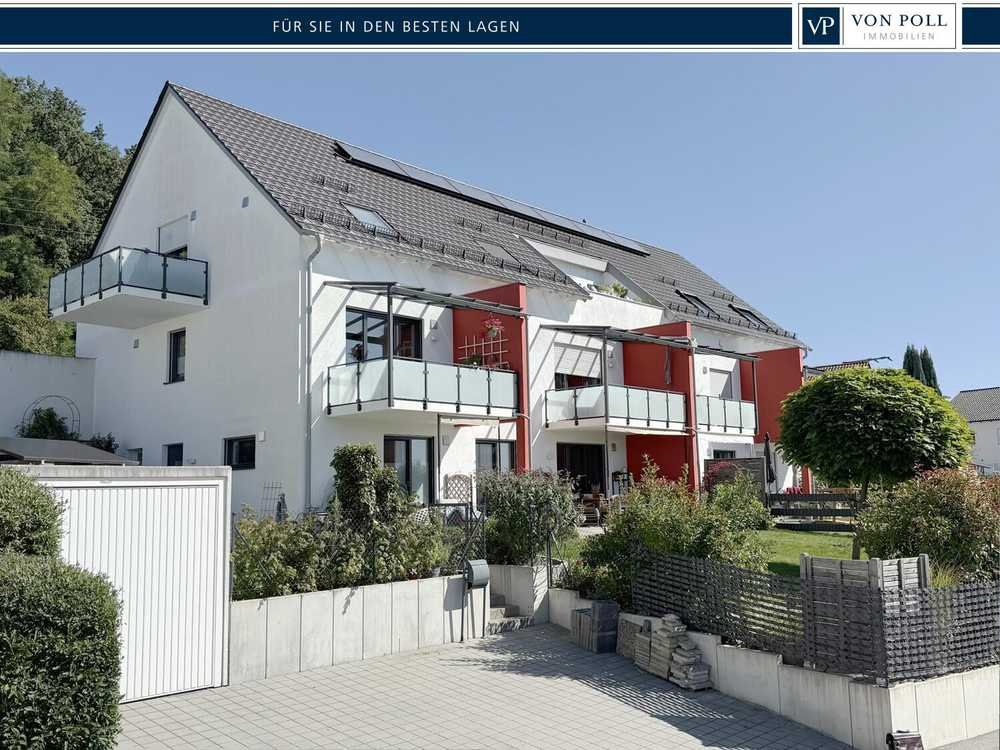 Die attraktive Wohnung präsentiert sich als Teil eines kleinen Hauses mit nur sechs Parteien, harmonisch in den Hang eingebettet. Über einen gepflasterten Vorplatz mit Garage und zusätzlichem Stellplatz führt eine elegante Treppe zum separaten Eingang. Ein Gartenhaus schafft Platz für verschiedene Geräte und Utensilien, während das weitläufige und mit einem verzinkten Zaun umrahmte und sehr gepflegte Gartengrundstück Raum für Erholung schenkt.