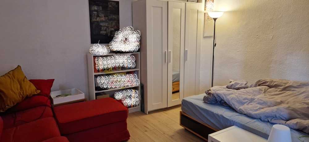 Die Wohnung liegt in einem gepflegten Mehrfamilienhaus mit 8 Parteien und verfügt über insgesamt zwei Zimmer, eines davon mit Zugang zum Balkon. Die Küche ist mit einer Einbauküche aus dem Jahr 2022 ausgestattet und bietet ausreichend Platz für einen kleinen Essplatz. Neben dem Flur gibt es eine kleinen Abstellraum und einen Keller.