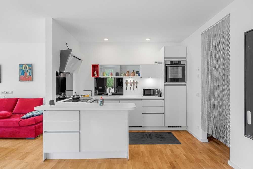 Ca. 2,60 m hohe Räume, großformatige Fenster mit Dreifachverglasung und hochwertige Ausstattungsdetails wie Echtholzparkett und Marken-Sanitärprodukte unterstreichen den modernen Wohnstandard.