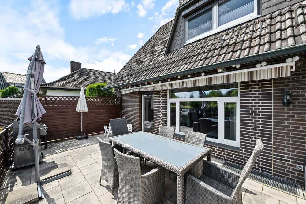 Der liebevoll angelegte Garten lädt mit viel Grün, einer sonnigen Terrasse zum Entspannen, Spielen oder Sonnen ein – hier genießen Sie Ihr eigenes kleines Urlaubsgefühl zu Hause.