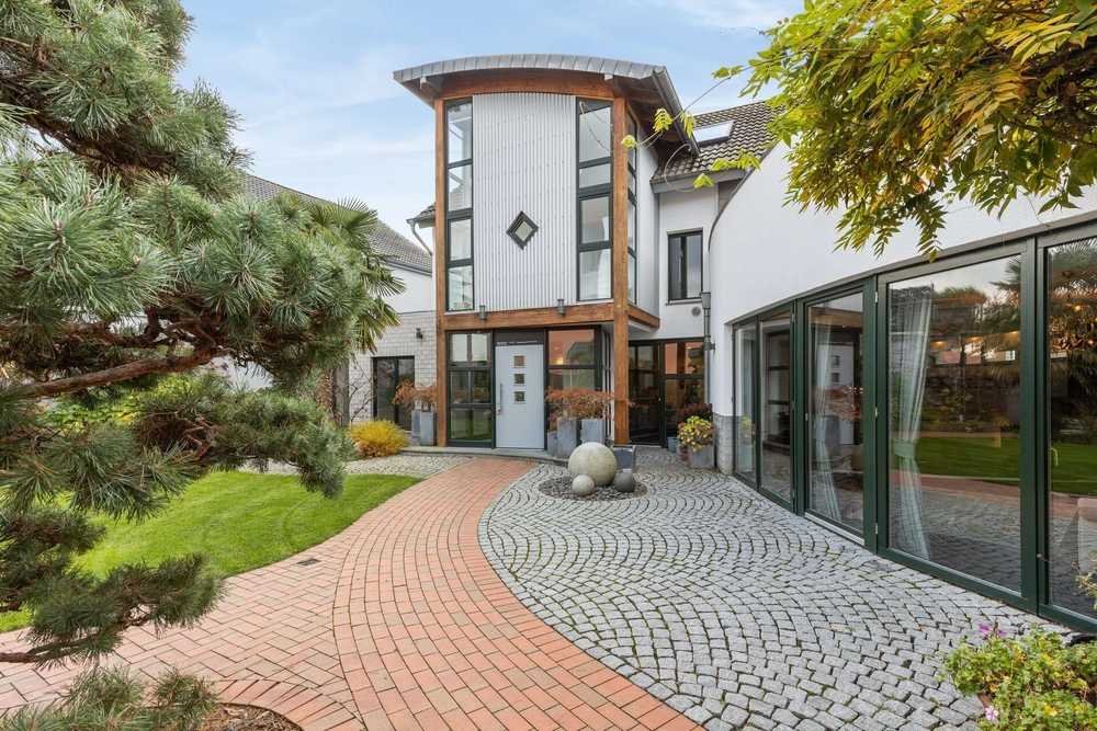 Dieses modern gestaltete Einfamilienhaus vereint anspruchsvolles Design mit großzügigem Wohnkomfort für die ganze Familie. Das Haus überzeugt mit ca. 310 m² Wohnfläche und verfügt über vier flexibel nutzbare Schlaf- oder Arbeitszimmer sowie einen freundlicher Wohn-Essbereich mit großer, offener Küche.