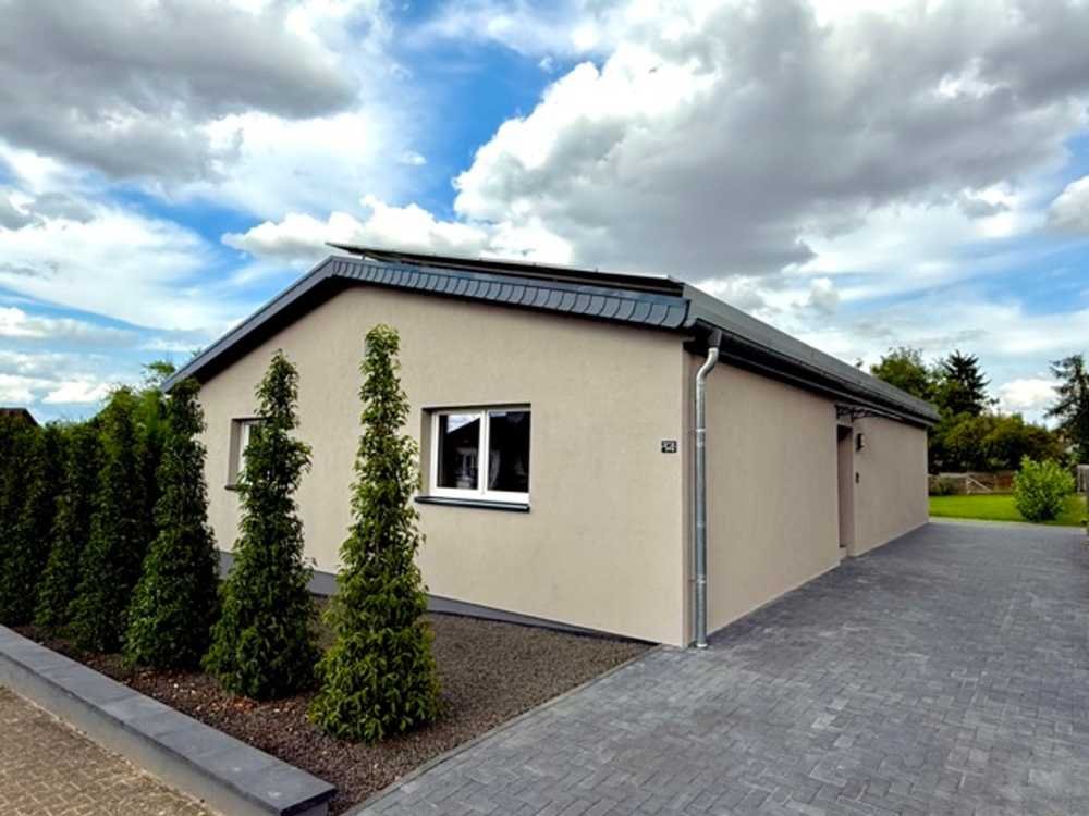 Willkommen in Ihrem neuen Lebensmittelpunkt! Dieser frisch sanierte Bungalow bietet Ihnen auf ca. 118 m² Wohnfläche ein modernes Zuhause mit klarer Raumaufteilung, das sich ideal für ein Paar mit Kind eignet. Zwei gemütliche Schlafzimmer, ein offener Wohn- und Essbereich mit direktem Zugang zur überdachten Terrasse sowie ein praktischer Abstellraum und ein modernes Duschbad mit Fenster schaffen ein behagliches Wohnambiente.