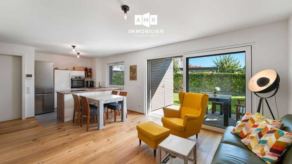 Die Wohnung überzeugt durch einen durchdachten Grundriss, helle Räume und eine hochwertige Ausstattung. Herzstück ist der großzügige Wohn und Essbereich mit direktem Zugang zur großen Terrasse und dem eigenen Gartenanteil. Hier genießen Sie viel Platz zum Entspannen, ein echtes Highlight für jede Lebensphase.