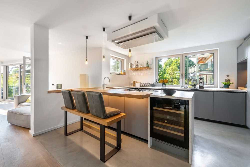 Die Ausstattung zeugt von Geschmack und Wertigkeit. Ein holzbefeuerter Panoramakamin, eine edle Schreinerküche mit Geräten von Gaggenau, V-Zug und Liebherr, weiß geölte Eichendielen mit Fußbodenheizung und zeitlos-elegant gestaltete Bäder lassen ein behagliches Wohnumfeld entstehen. Drei Stellplätze komplettieren dieses Zuhause unweit des Starnberger Stadtzentrums.