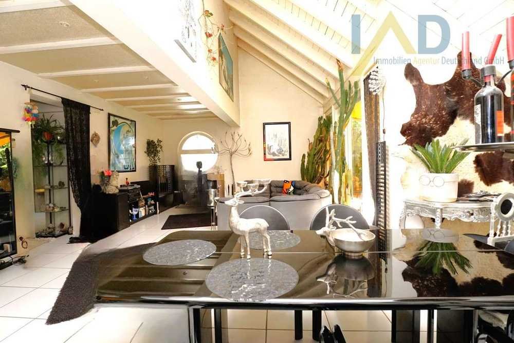 Das helle Wohn- und Esszimmer mit Balkon und Kaminofen-Anschluss sorgt für ein angenehmes Raumgefühl.