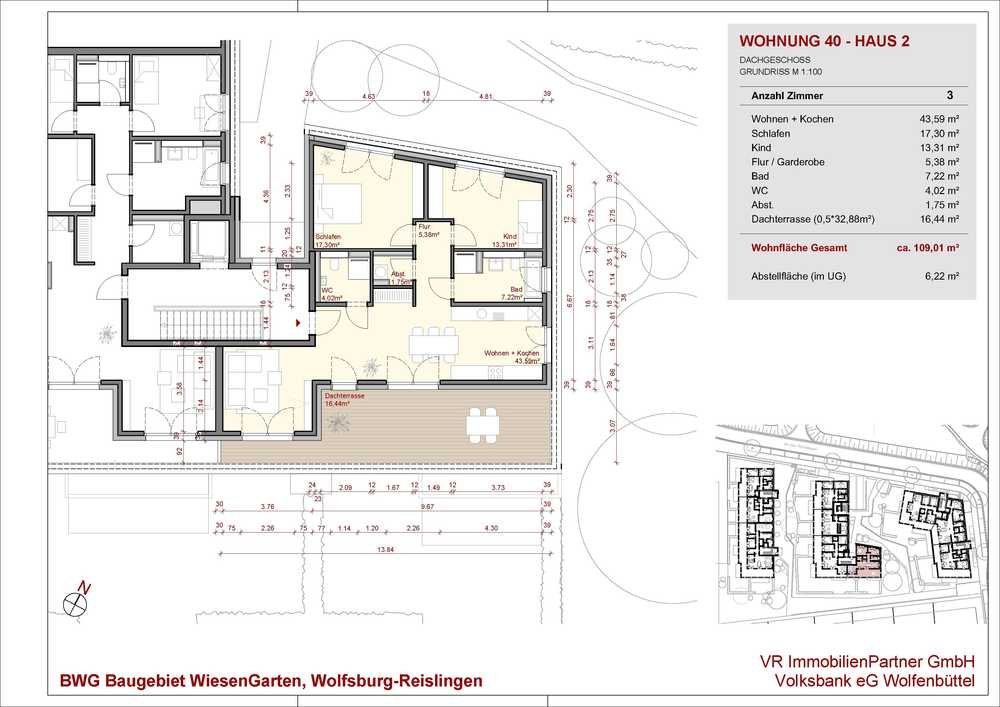 In exponierter Lage zur Wolfsburger Innenstadt sind im Baugebiet „Wiesengarten“ auf einem 6.465 m² großen Eigentumsgrundstück drei ausdrucksstarke Baukörper - bestehend aus jeweils drei Vollgeschossen und einem Staffelgeschoss - entstanden.